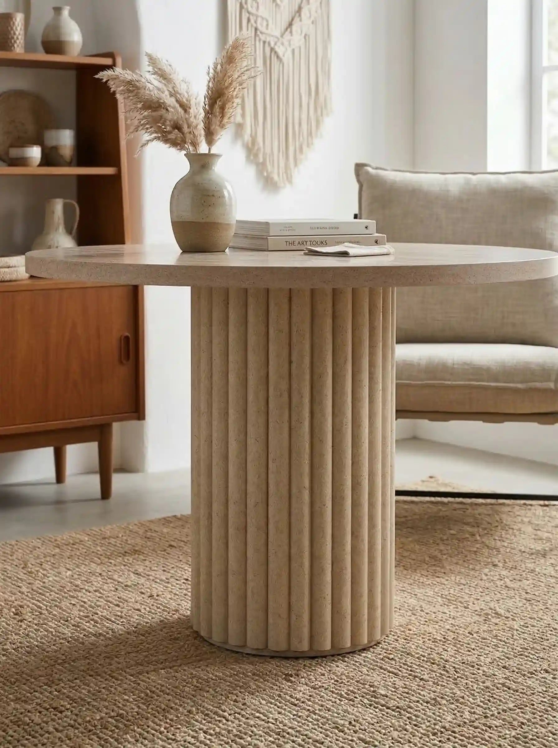 Fitilli 4 kişilik Traverten Silindir Ayaklı Yemek Masasının öne çıkan özelliği nedir?