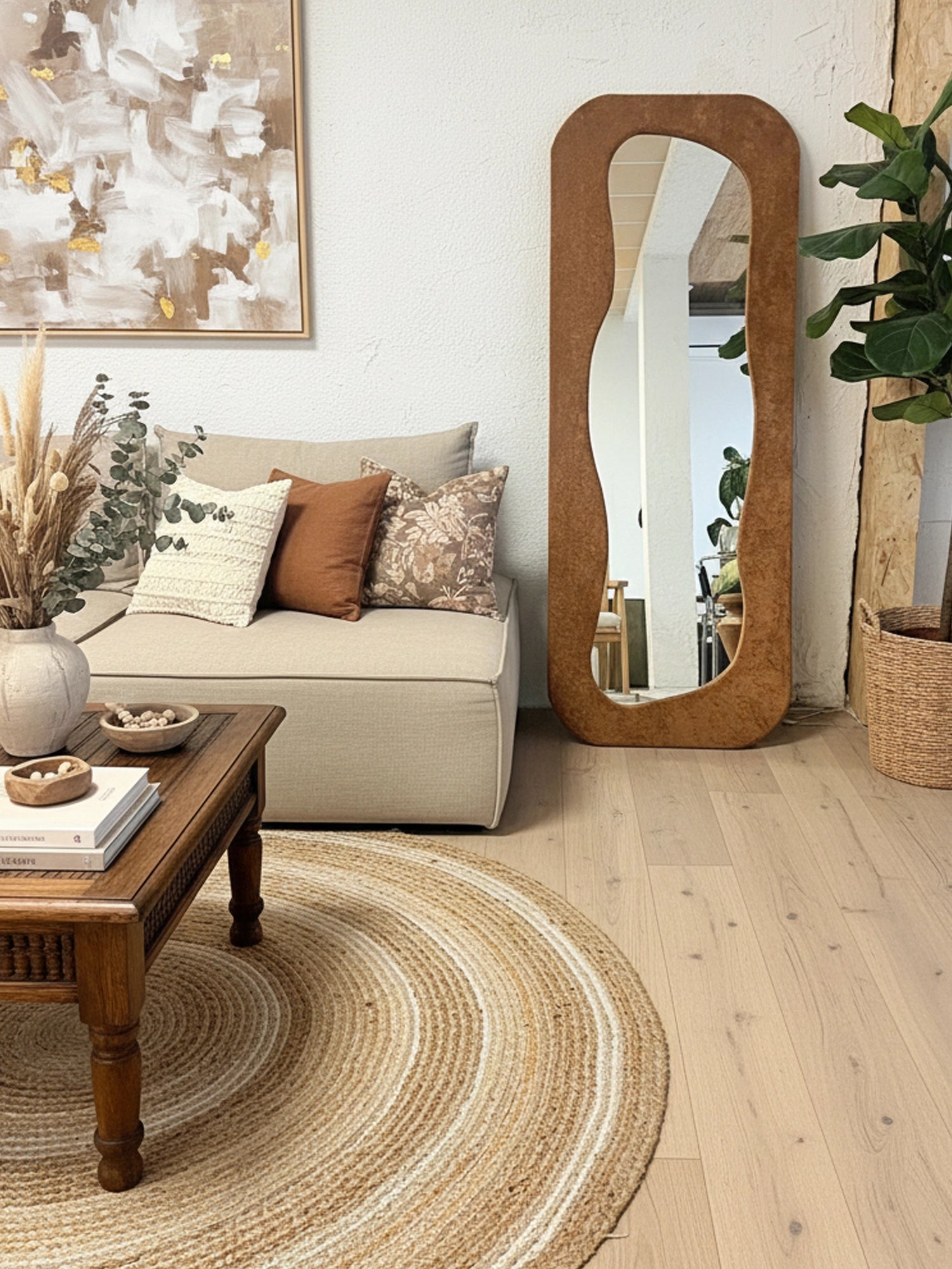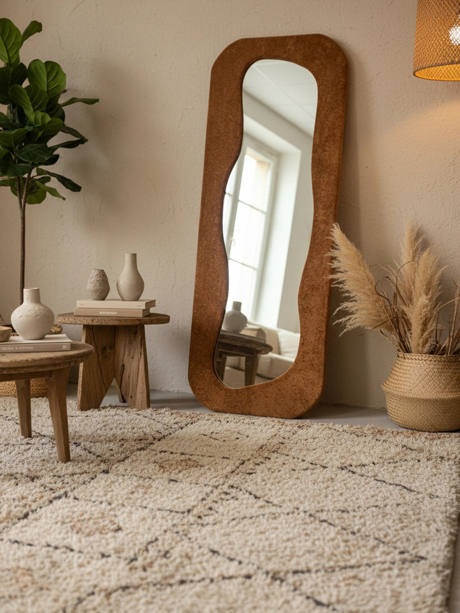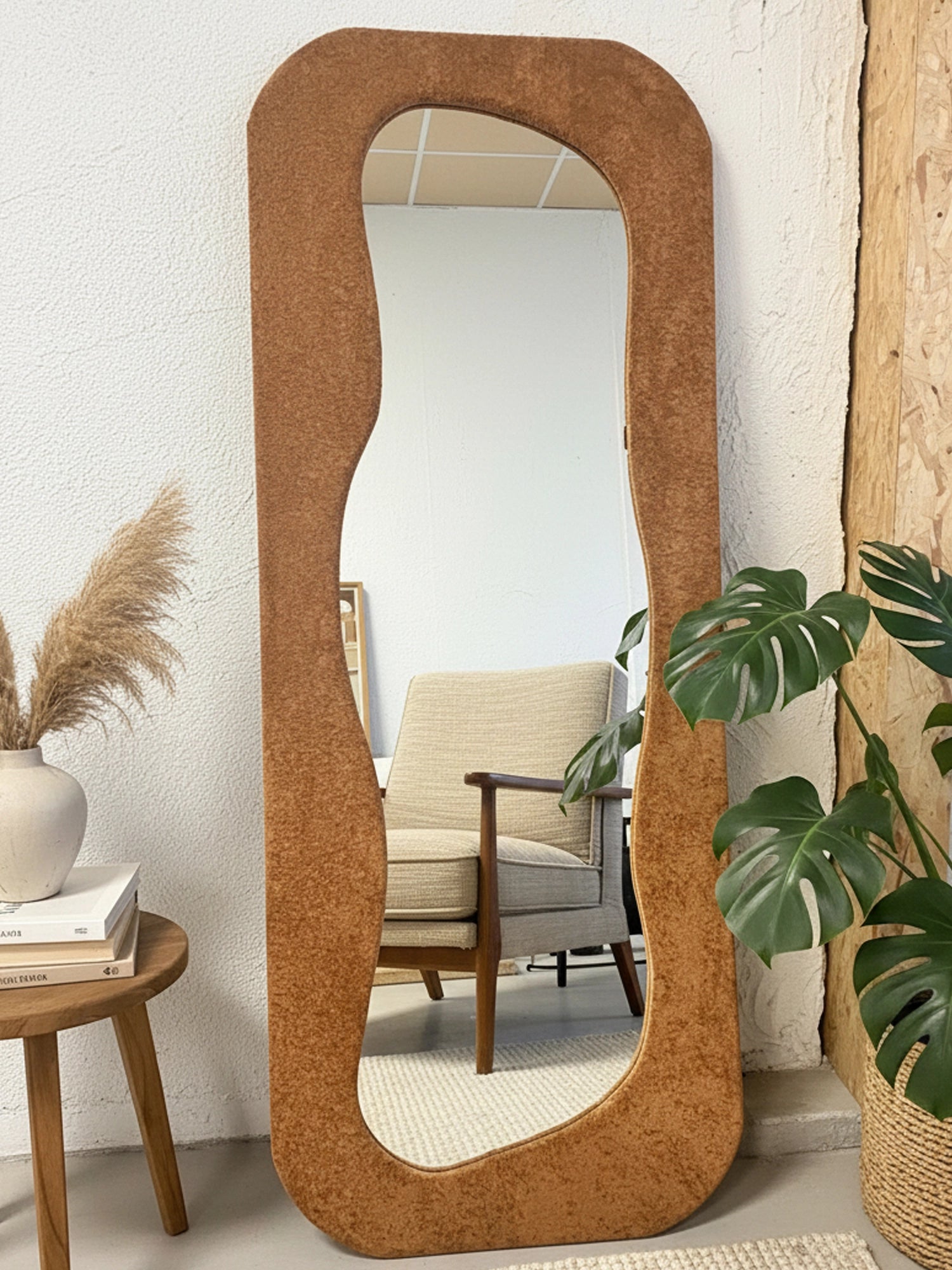 Organik hatları ve modern siluetiyle bu boy aynası, bulunduğu alanda güçlü bir dekoratif etki yaratır. Yumuşak kıvrımlı formu sayesinde klasik dikdörtgen aynalardan ayrılır; mekâna daha akışkan, daha “tasarım” bir görünüm kazandırır. Salon, yatak odası, antre veya giyinme alanlarında hem işlevsel hem de estetik bir odak noktası olur. Dayandığı duvarı anında daha aydınlık ve ferah gösterirken, bulunduğu köşeye tamamlanmış bir stil hissi verir.