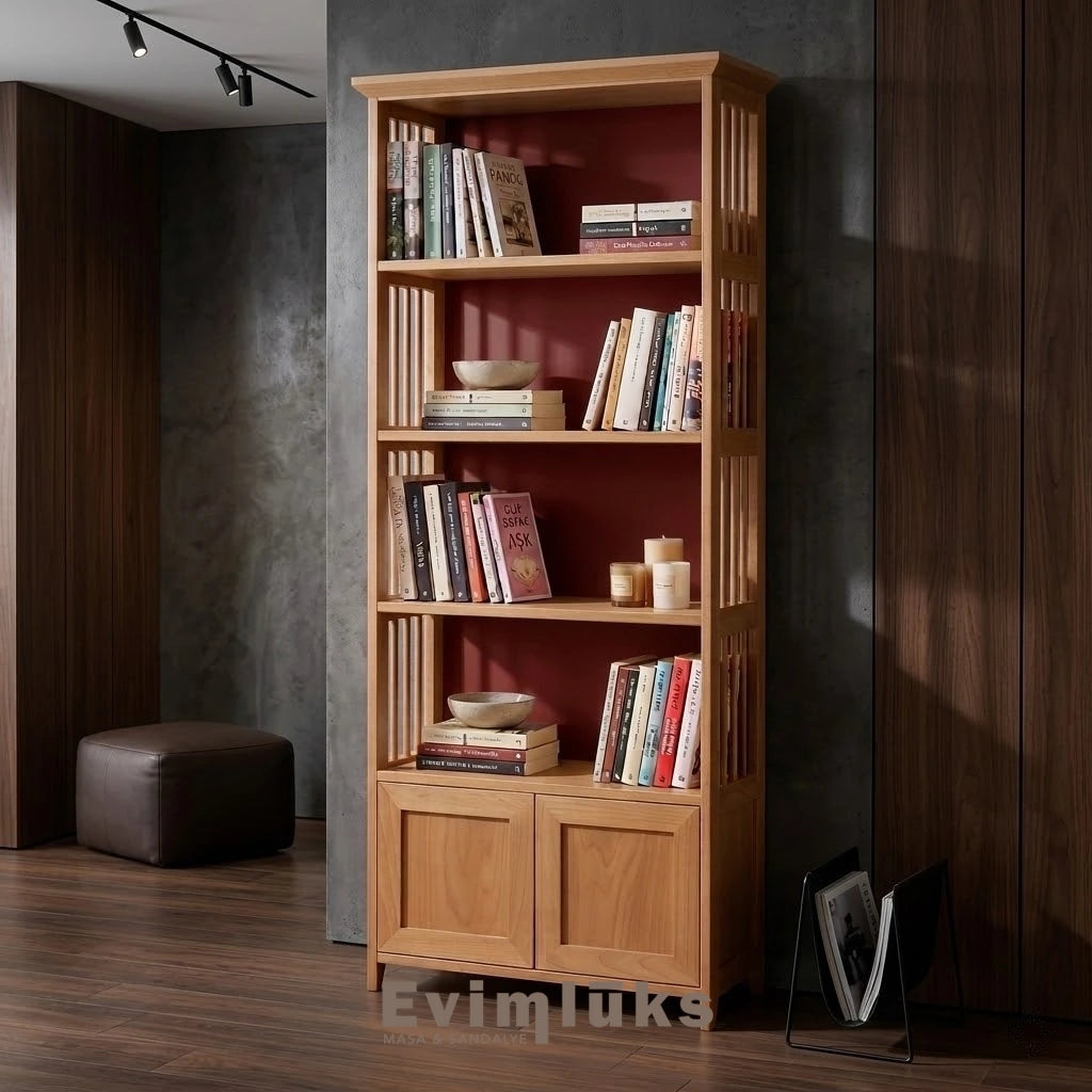 Kitaplarınızı ve en sevdiğiniz objeleri sergilerken mekanın ferahlığını korumak istiyorsanız, bu tasarım tam size göre! Klasik kapalı kütüphanelerin aksine, yan yüzeylerindeki açık "ızgara" (slatted) detayı sayesinde bulunduğu ortama derinlik ve hafiflik katar. İskandinav ve modern stilin temiz çizgilerini taşıyan bu kitaplık, alt kısmındaki kapaklı dolabıyla ekstra depolama alanı sunarken üst raflarıyla görsel bir şölen yaratır.Kitaplığın iskeleti ve ızgara detayları sağlam masif kayın ağacından; rafları ve alt dolap kapağı ise ağacın gerçek dokusunu yansıtan masif kayın kaplamadan yapılmıştır. Arka panelinde kullanılan dayanıklı kontrplak sayesinde yapısal bütünlüğü desteklenir. Tertemiz zımparalanmış ham formu, hobi boyalarınız veya profesyonel cila uygulamalarınız için pürüzsüz bir zemin sunar.