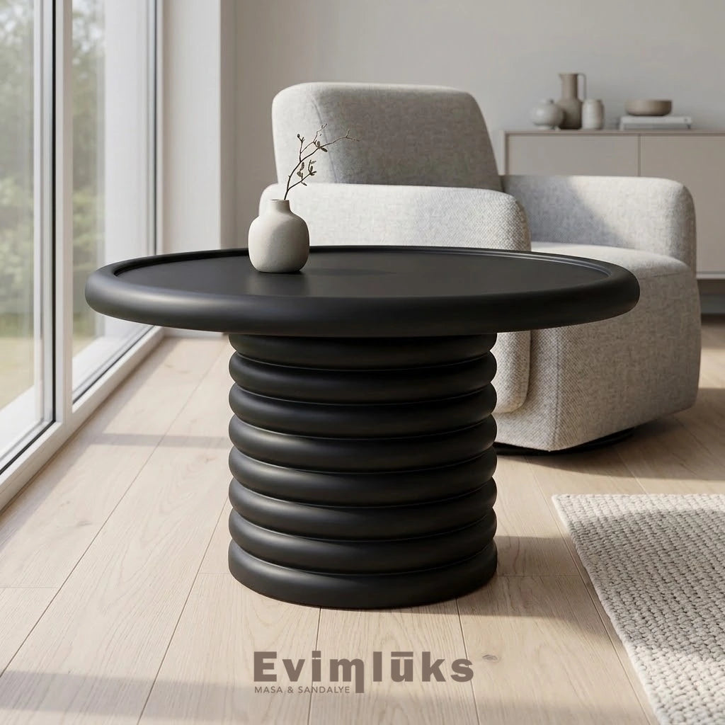 Bilezik formunu amerikan siyah cila ile kapladığınızda, tasarımın ritmi tam bir modern sanat objesine dönüşür. İddialı ve avangart bir siyah tasarım sehpa arayanlar için kusursuz seçimdir.