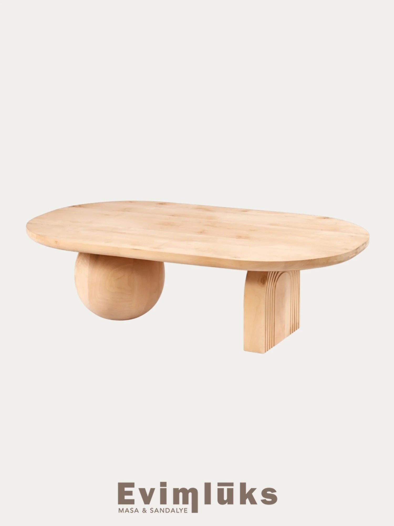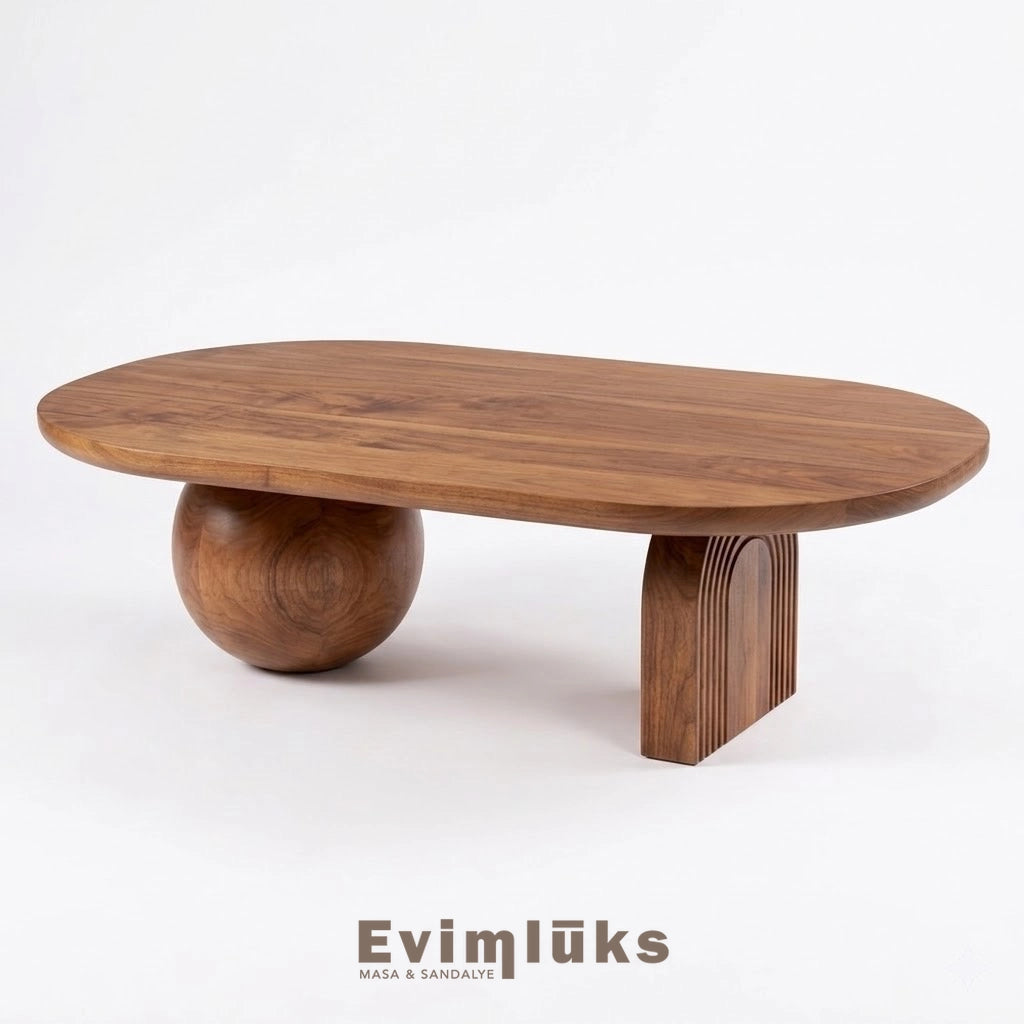 Salonunuzda sıradan bir mobilya yerine tüm dikkatleri üzerine çekecek sanatsal bir dokunuşa ne dersiniz? Doğanın kusurlu mükemmelliğinden (Wabi-Sabi) ve bohem tarzın özgür ruhundan ilham alan bu özel tasarım, asimetrik ayak yapısıyla sınırları aşıyor. Bir yanda pürüzsüz bir küre, diğer yanda ince işçilikli yivli (oluklu) kemer ayak ve bu ikiliyi taçlandıran devasa organik üst tabla... Kendi sanatını konuşturmak isteyen dekorasyon tutkunları için bu şaheser, tamamen ham ıhlamur ağacı formunda sunulmaktadır.