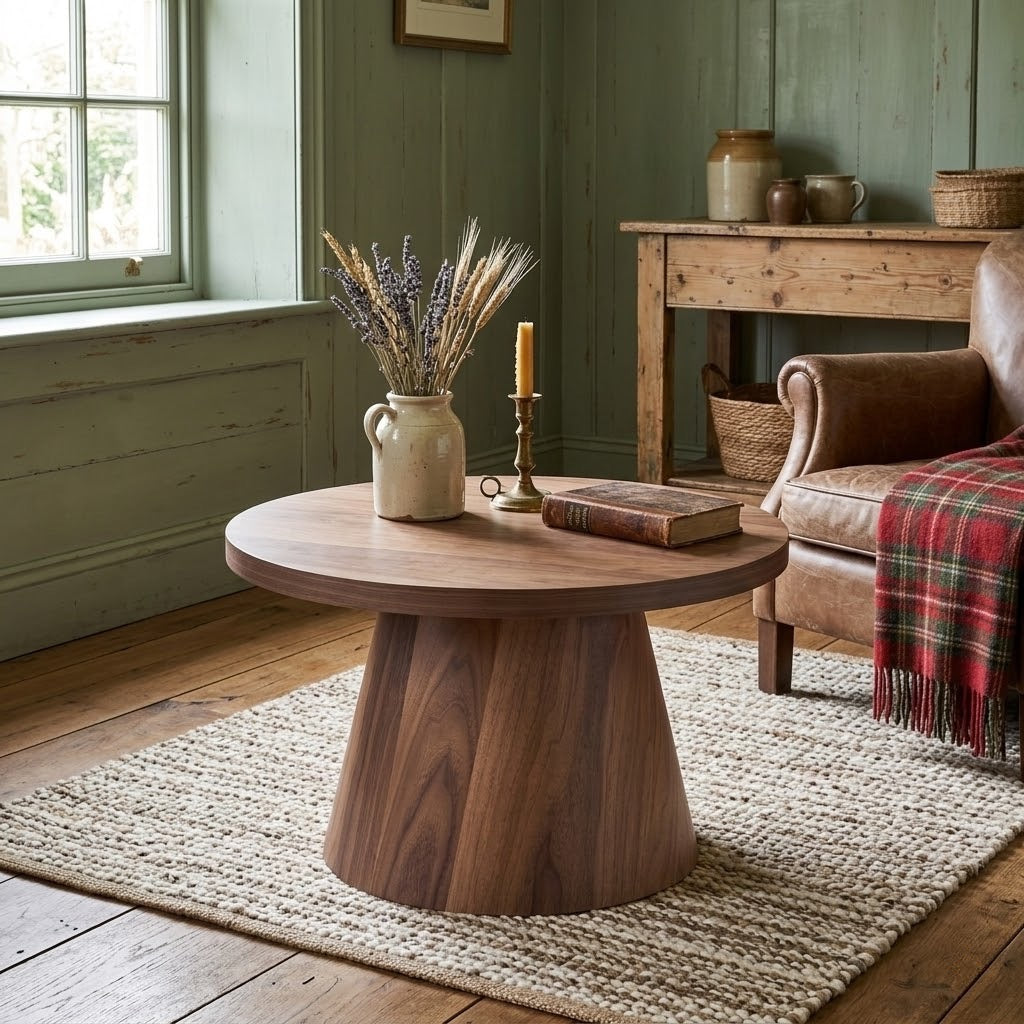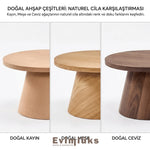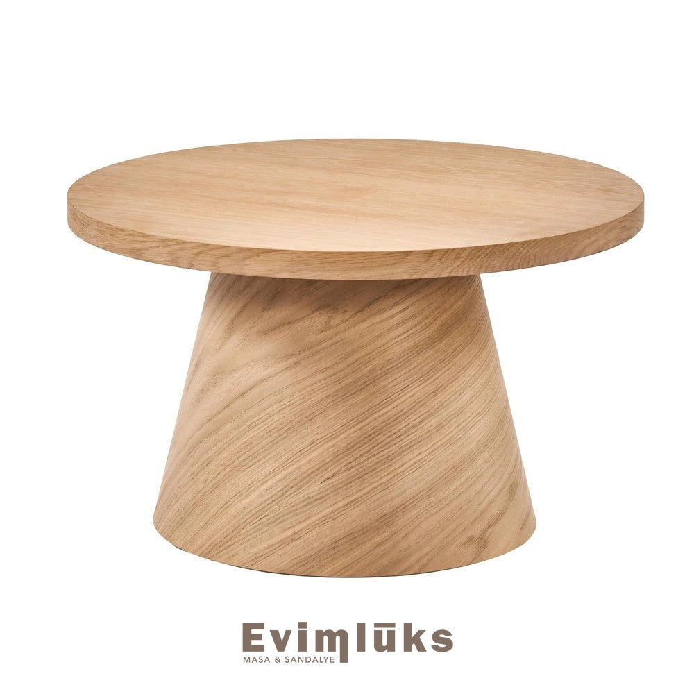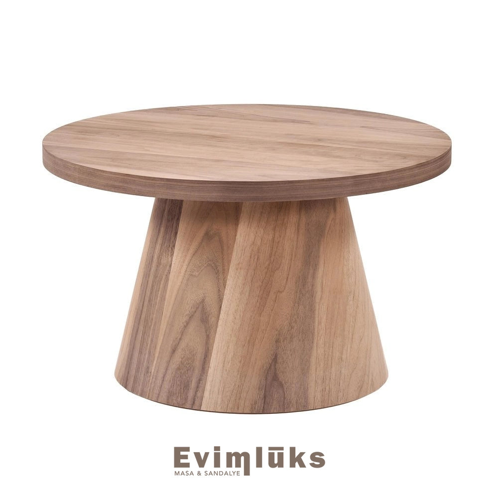 Modern dekorasyonun vazgeçilmezi olan konik ayak formu, doğanın en asil üç ağacıyla yeniden hayat buluyor. 80 cm’lik geniş yuvarlak tablası ve dengeli duruşuyla bu sehpa, hem fonksiyonel bir kullanım sunuyor hem de heykelsi bir obje gibi mekanın ruhunu yükseltiyor. Kendi sanatını konuşturmak isteyenler için hiçbir işlem görmemiş, pürüzsüz ham formunda sizi bekliyor.