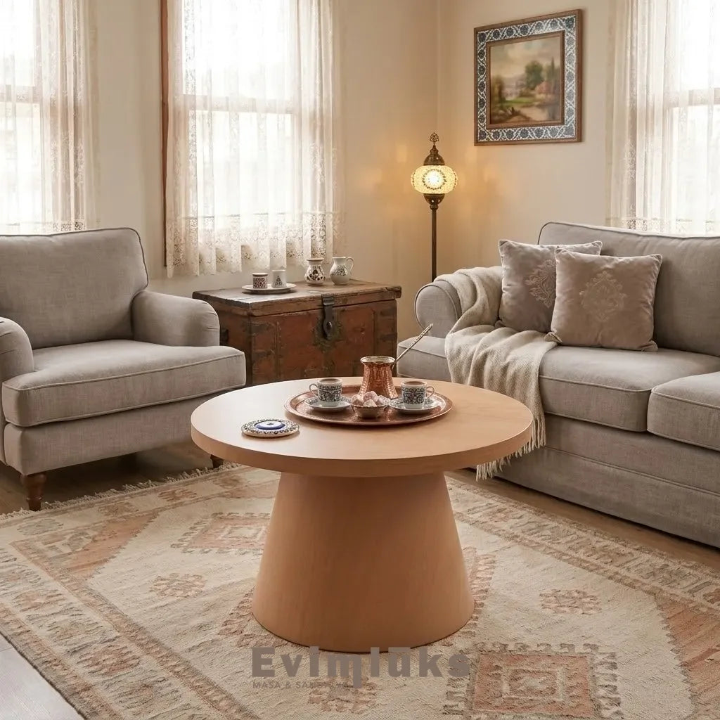 • Görsel Ritim: Meşenin hareleri (damar desenleri), sehpanın yuvarlak yüzeyinde adeta bir sanat eseri gibi akar. Her bakışta yeni bir detay keşfetmenizi sağlar.