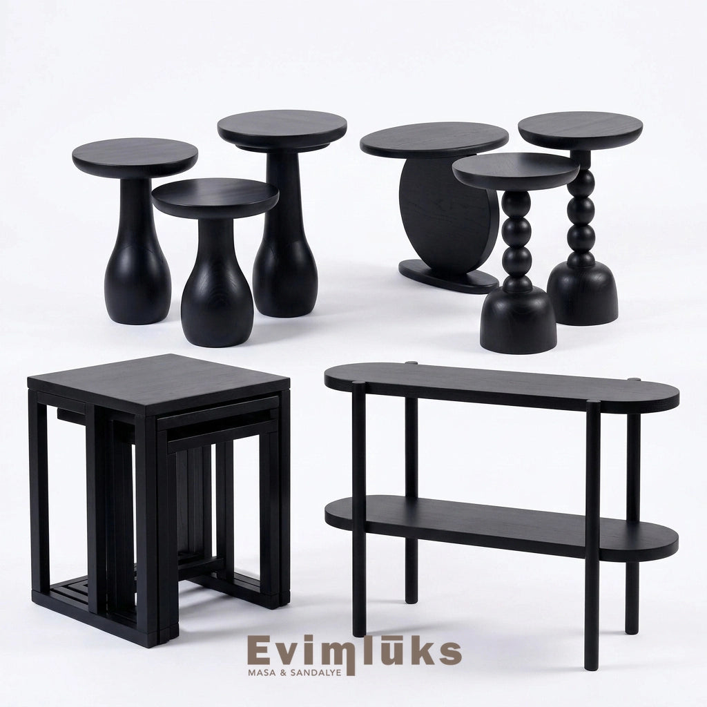 Elips tasarımın yumuşak hatlarını mat siyah amerikan cila ile buluşturduğunuzda, aydınlık duvarların önünde patlayan son derece iddialı ve modern bir siyah dresuar elde edersiniz. Meşe damarlarının siyahın altından hafifçe kendini göstermesi, evinize lüks bir siyah ahşap konsol şıklığı kazandıracak.