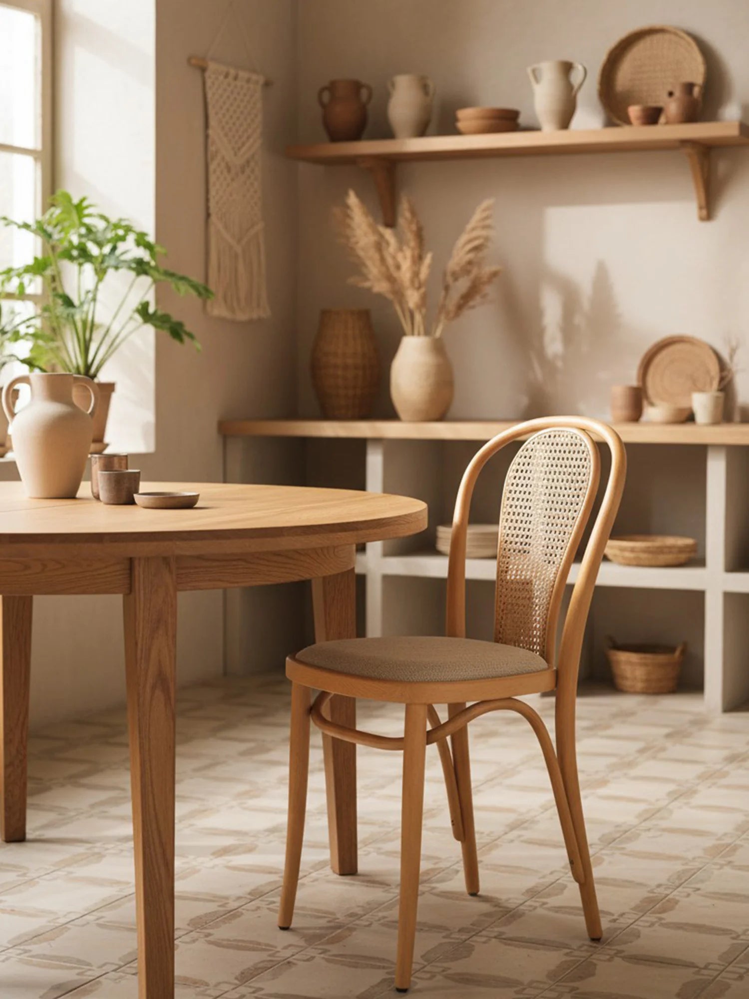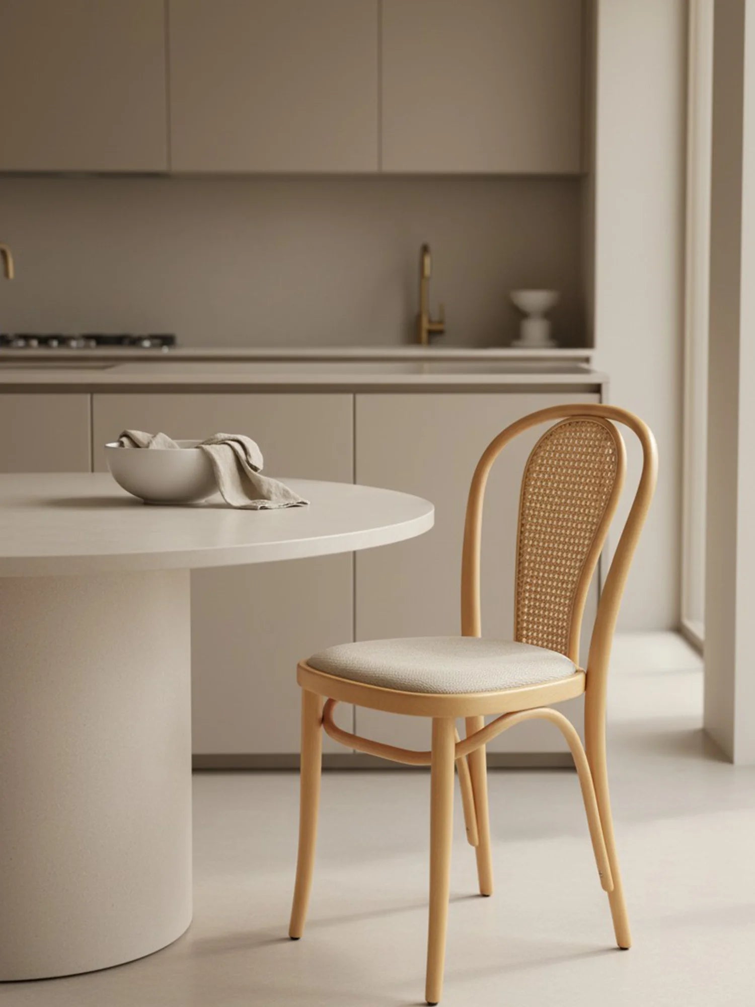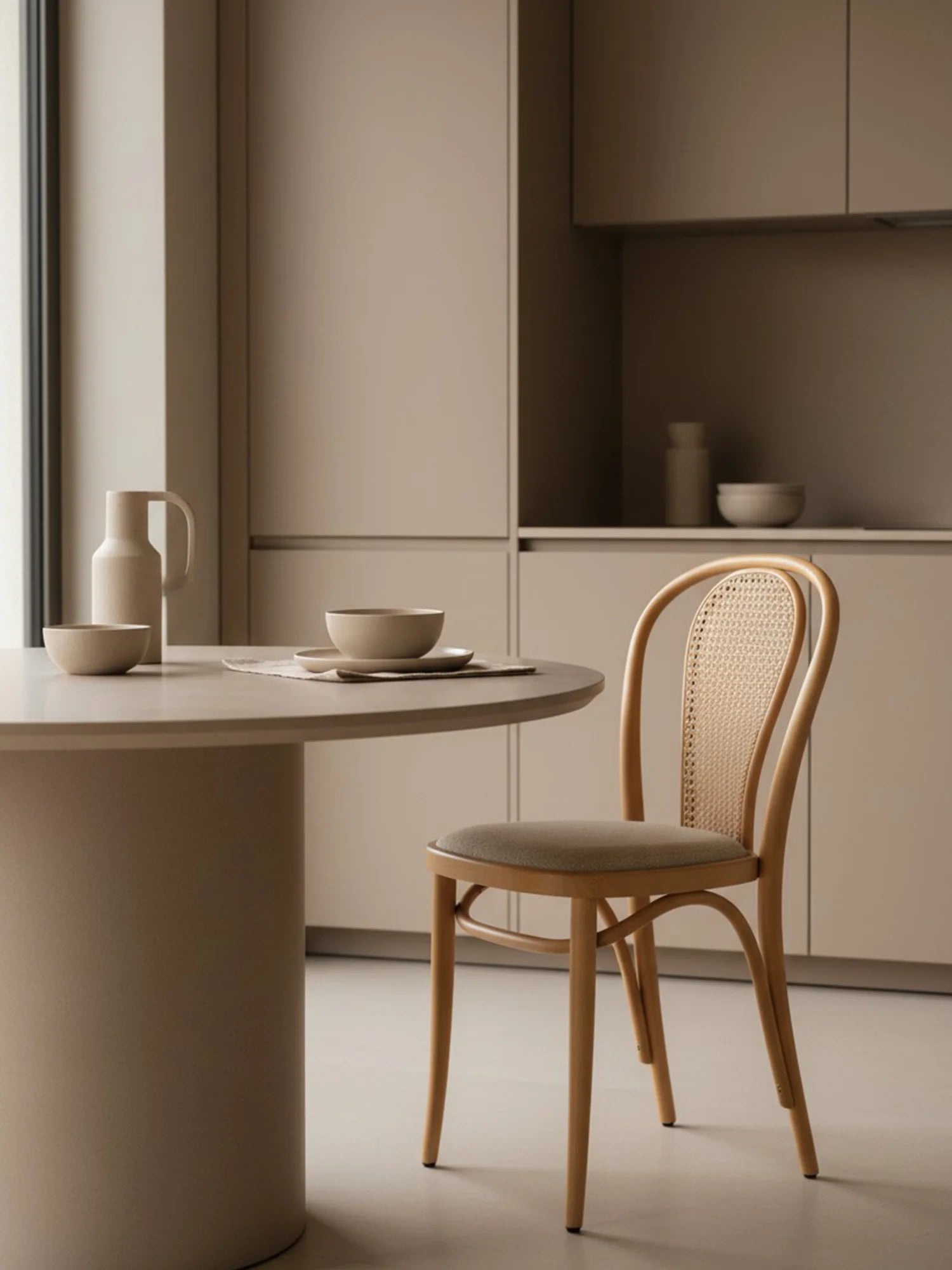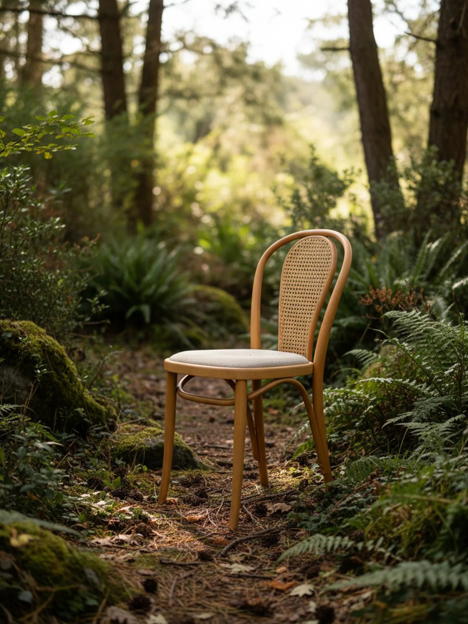 Thonet Model 18'in en belirgin özelliği, ustalıkla bükülerek şekillendirilmiş zarif "U" formundaki iç içe geçen sırt iskeletidir. Kullanıcının isteğine göre bu estetik sırta eklenendoğal hazeran detayı ve kişiselleştirilebilen oturum seçenekleri (döşemeli/masif), sandalyeyi sıradan bir mobilya olmaktan çıkarıp mekanın ruhuna uyum sağlayan zamansız bir klasiğe dönüştürür.