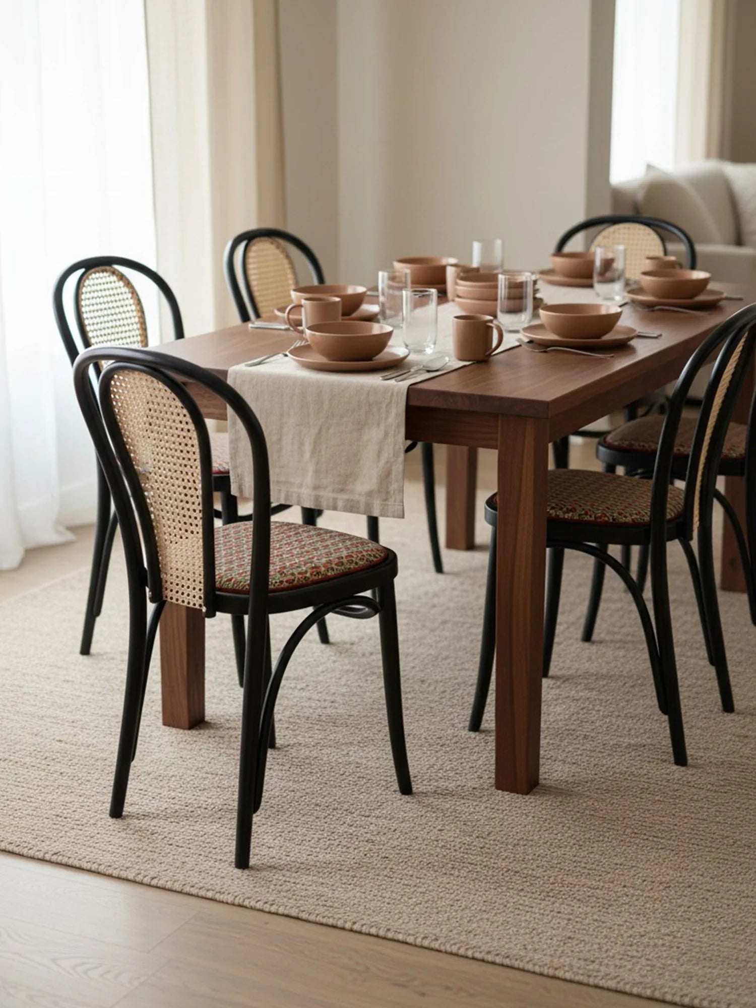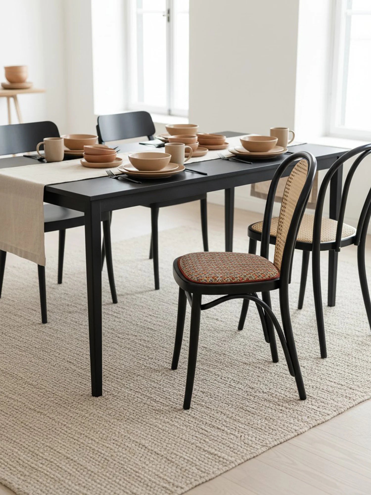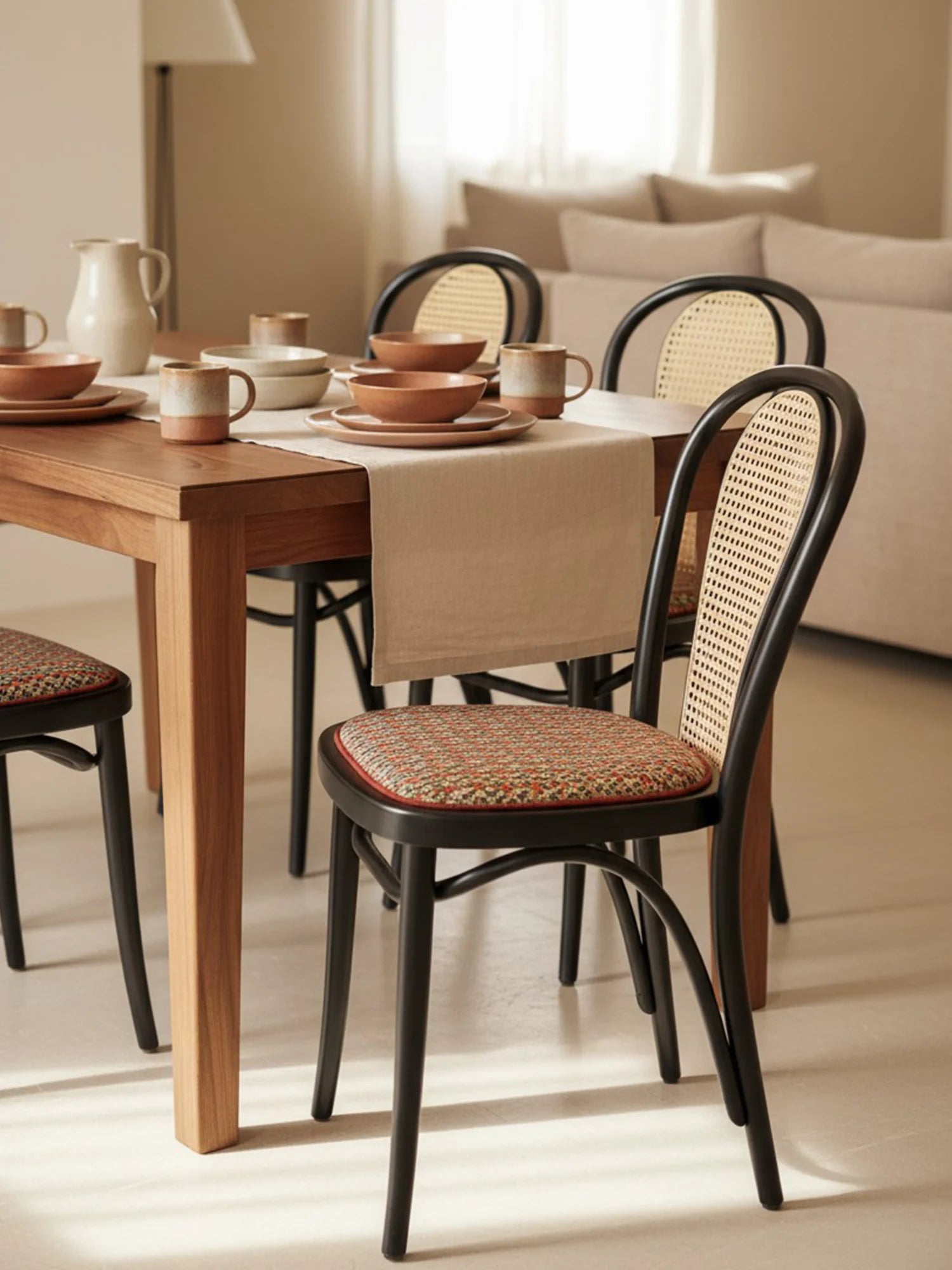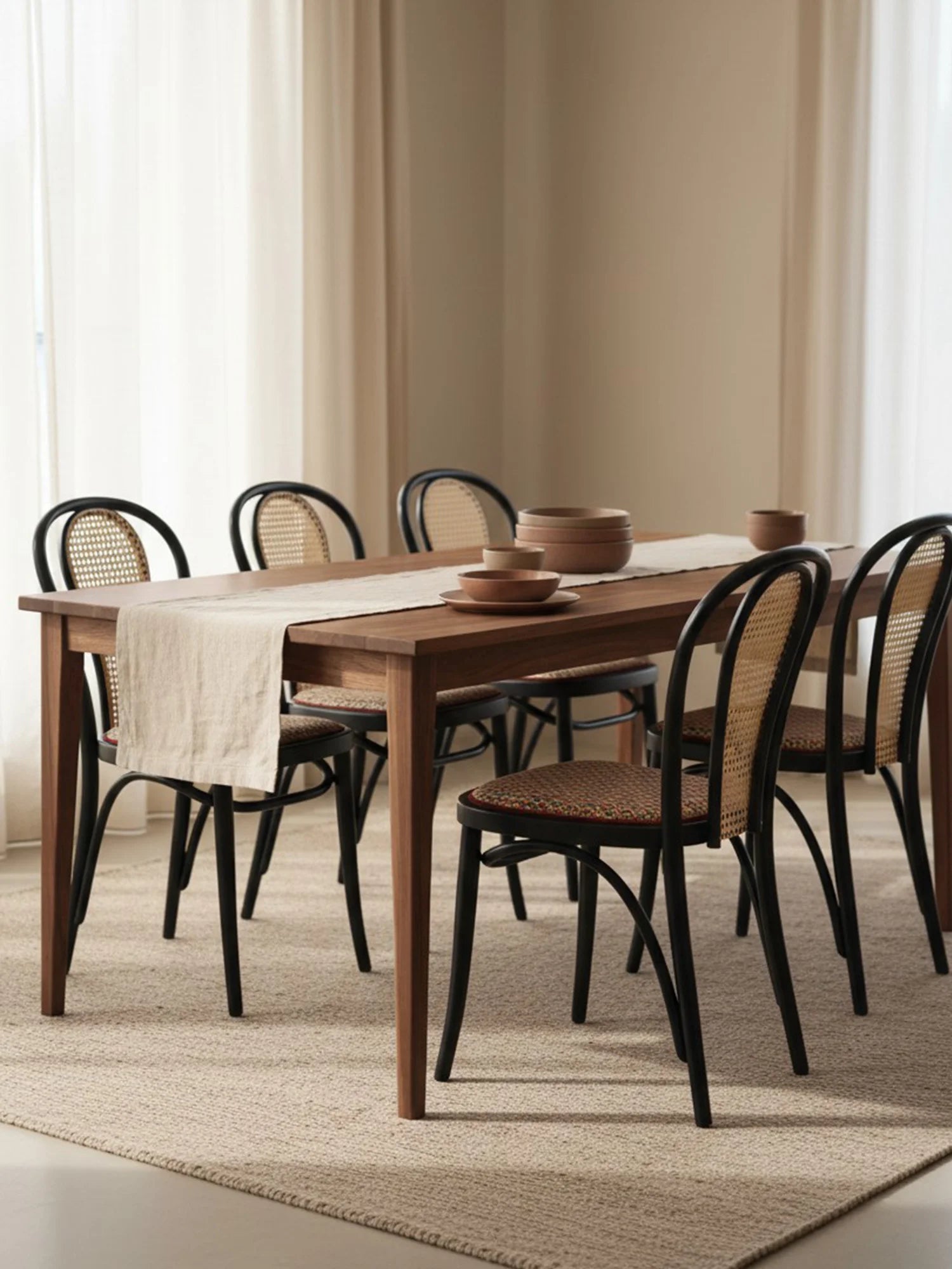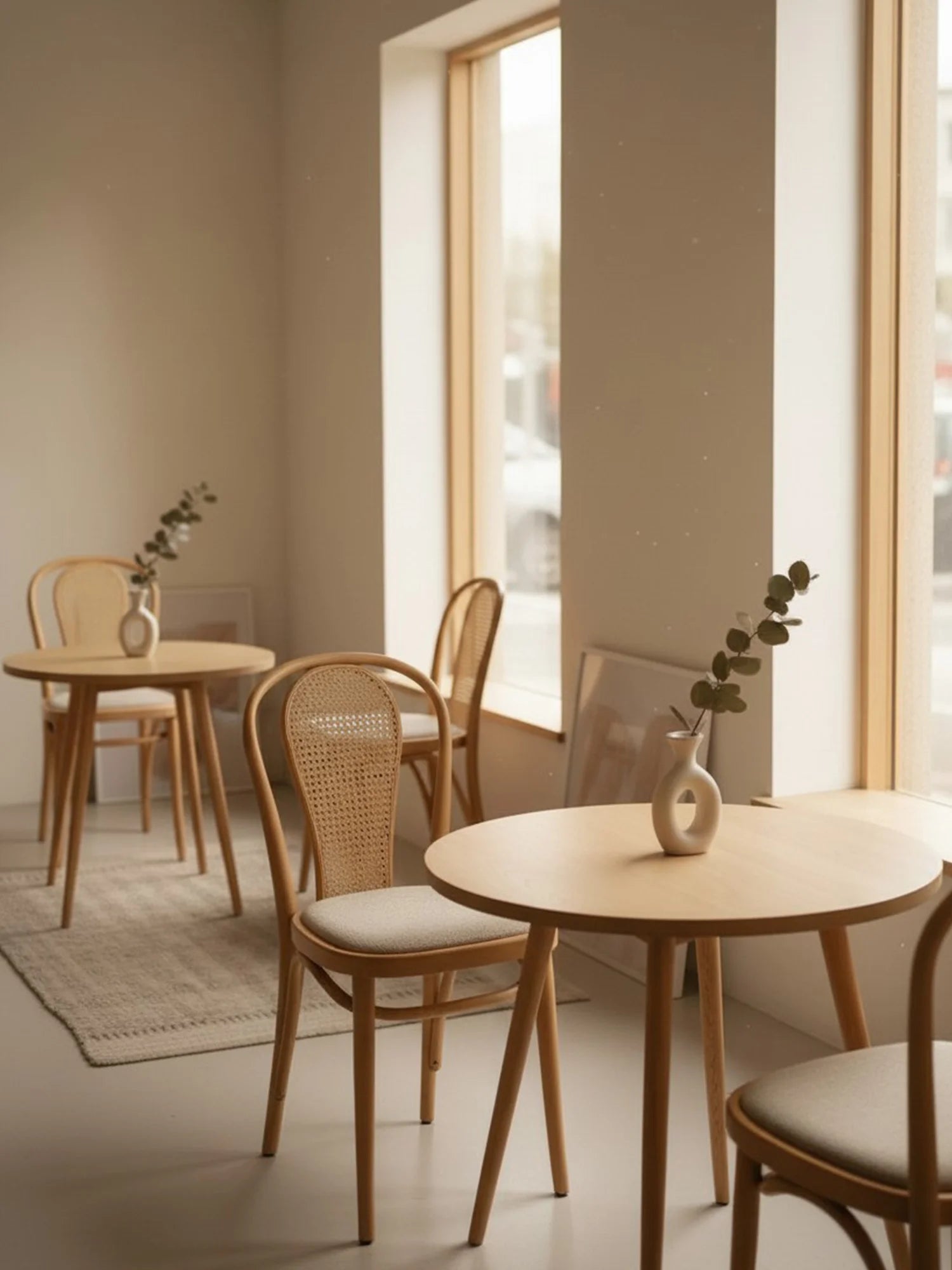 Thonet Model 18'in en belirgin özelliği, ustalıkla bükülerek şekillendirilmiş zarif "U" formundaki iç içe geçen sırt iskeletidir. Kullanıcının isteğine göre bu estetik sırta eklenendoğal hazeran detayı ve kişiselleştirilebilen oturum seçenekleri (döşemeli/masif), sandalyeyi sıradan bir mobilya olmaktan çıkarıp mekanın ruhuna uyum sağlayan zamansız bir klasiğe dönüştürür.