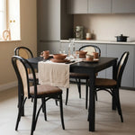 Klasik ahşap büküm tekniğiyle fırınlanmış masif ağaçtan üretilen Thonet No 18 sandalye, kafe, restoran, otel ve ev projelerinin en çok tercih edilen modellerindendir. Müşteri talebine göre sırtı hazeranlı veya ahşap çubuklu; oturum kısmı ise döşemeli (farklı kumaş alternatifleriyle) veya döşemesiz masif olarak özel üretilebilmektedir. Hem vintage ve retro tarzı hem de modern rustik dekorasyonu destekleyen bu ahşap bistro sandalye, uzun ömürlü dayanıklı iskeleti ve çoklu kişiselleştirme seçenekleriyle projeleriniz için mükemmel bir yatırımdır.
