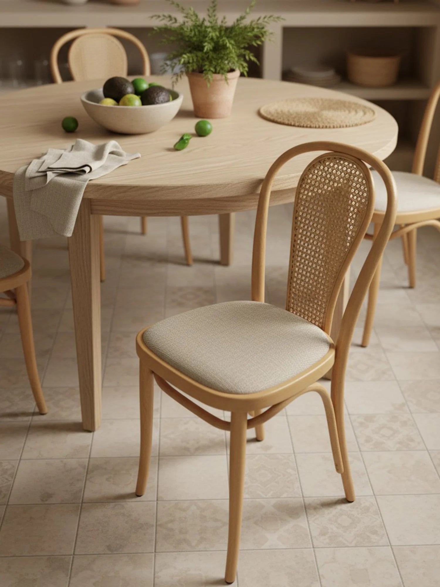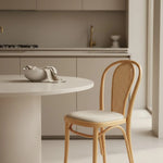 Thonet Model 18’in zarif buklelerinden oluşan sırtına yaslandığınızda, kendinizi tarihi bir Viyana kafesinde kahvenizi yudumlarken hissetmeniz işten bile değildir. İster sırtındaki hazeran dokusunun doğal sıcaklığını, ister bükülmüş çıplak ahşabın pürüzsüzlüğünü tercih edin; bu sandalye mekanınıza samimi ve nostaljik bir huzur katar. Zarif ve ince yapısına rağmen sunduğu güven veren rahatlık, sevdiklerinizle masa etrafında geçireceğiniz uzun ve keyifli saatlerin en şık eşlikçisi olacaktır.