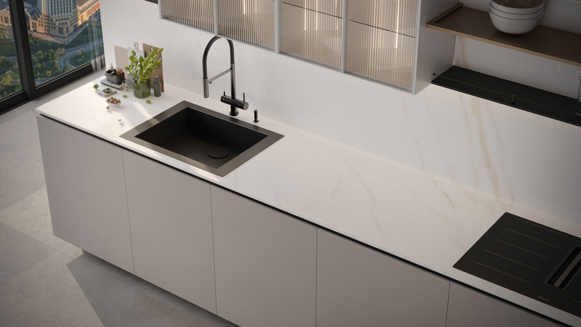 Lamar® posrselen mutfak tezgâhları; geniş renk ve desen yelpazesi ile mutfaklara estetik bir görünüm katar.