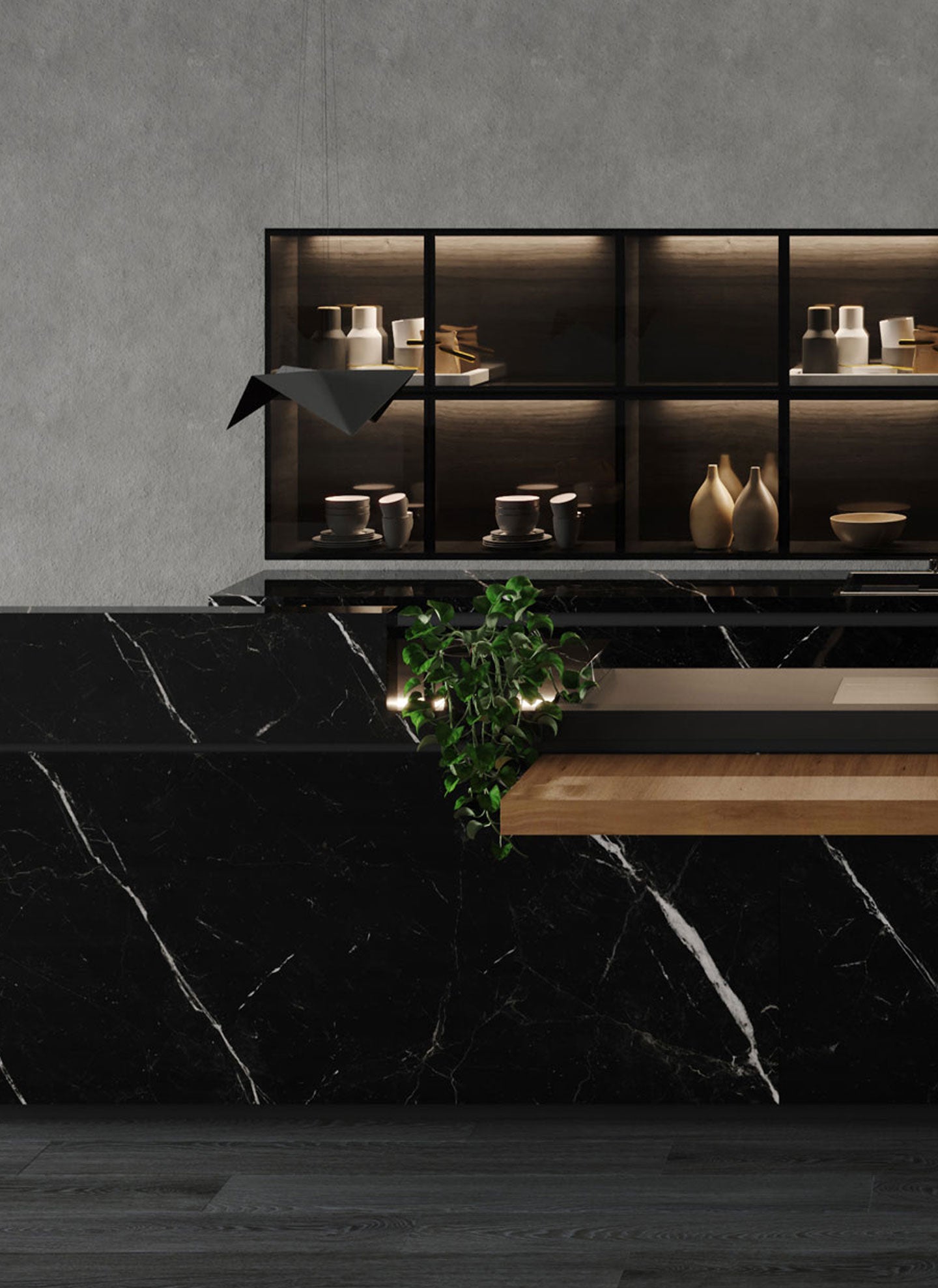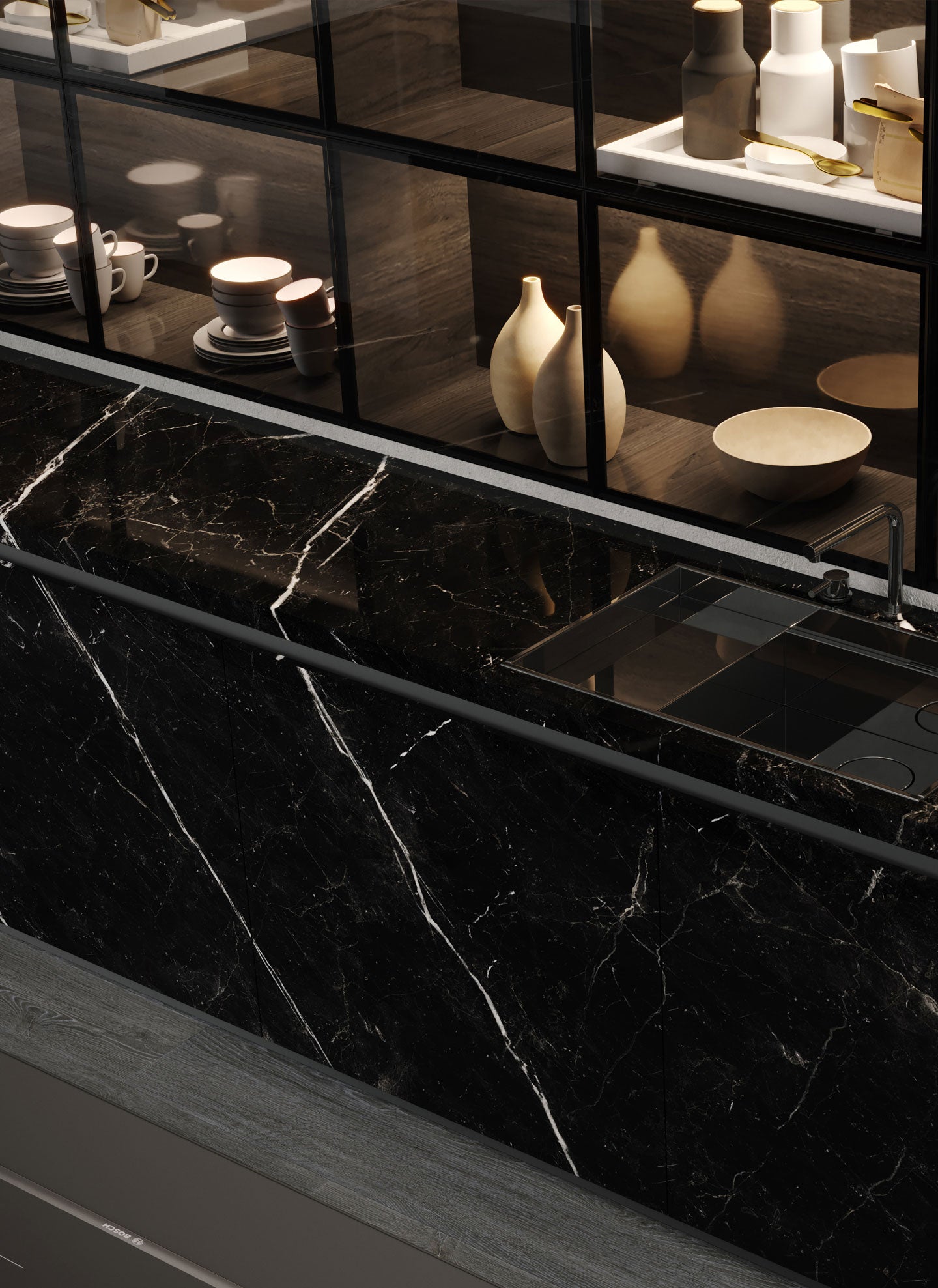 Lamar® Marquina, yüksek kontrastlı siyah-beyaz dokusuyla çağdaş iç mekânlarda odak noktası yaratır. Modern çizgilerle uyum içinde, tasarıma derinlik ve karakter kazandırır.