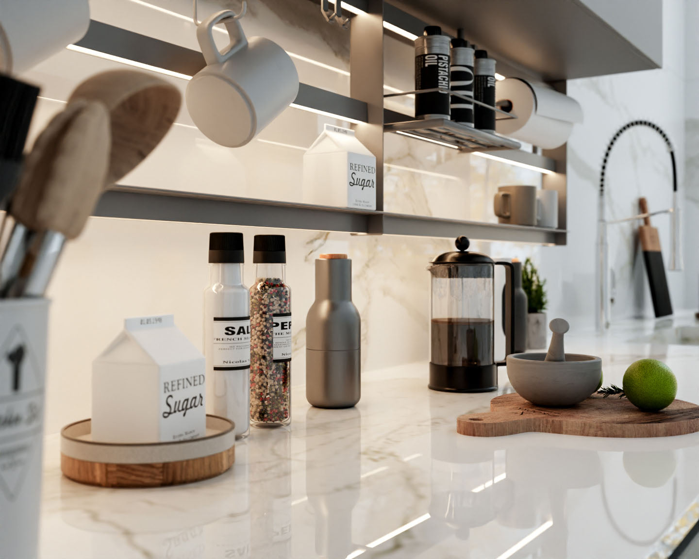 Lamar® posrselen mutfak tezgâhları; geniş renk ve desen yelpazesi ile mutfaklara estetik bir görünüm katar.